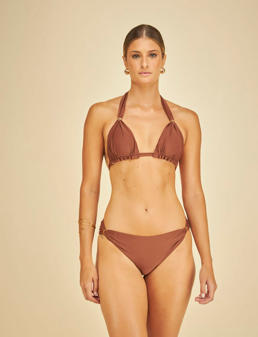 o Biquíni Top Ajustável e Calcinha Detalhes Tubos Nature possui detalhes em tubos com adornos banhados a ouro que adicionam a liberdade de ajuste lateral.