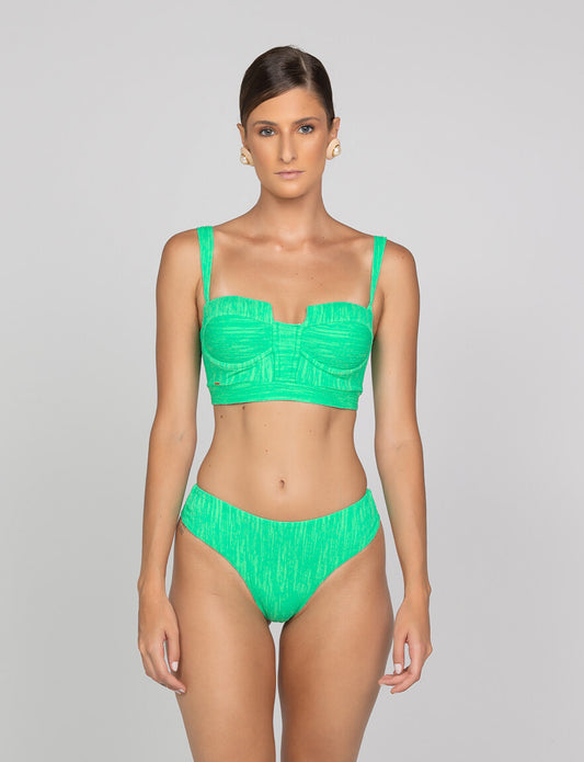 Calça de biquíni com loop de lycra na lateral e costura embutida. Lycra texturizada .