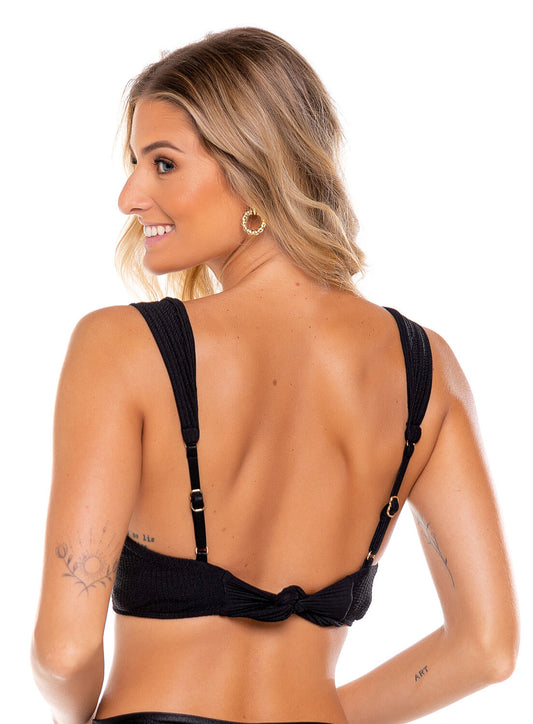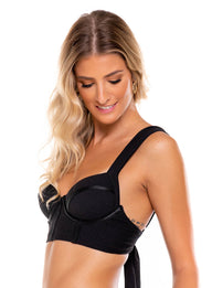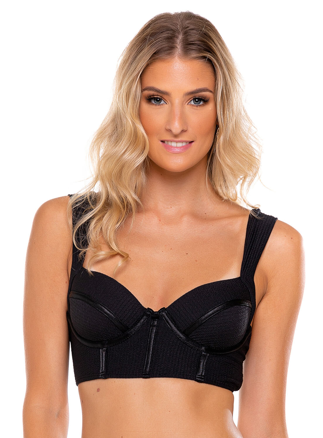 O Top Meia taça Hot Pants Texturizado e Aro Estruturado é um clássico com exuberância e sofisticação. O modelo possui excelente sustentação aos seios por possuir palas na parte inferior do busto, além de aro estilo meia taça que acomodam muito bem o volume dos seios. O Top Meia taça hot pants possui alças largas para melhor conforto aos ombros e amarras nas costas para melhor adaptação no seu corpo.